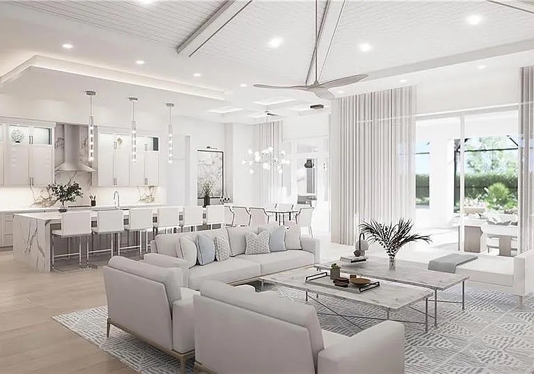 This custom-designed single-story residence is located within the Serrano subdivision of Bonita Springs, Florida. The home blends open-concept living with resort-style outdoor amenities, engineered to meet modern Florida Building Code standards and coastal flood requirements.