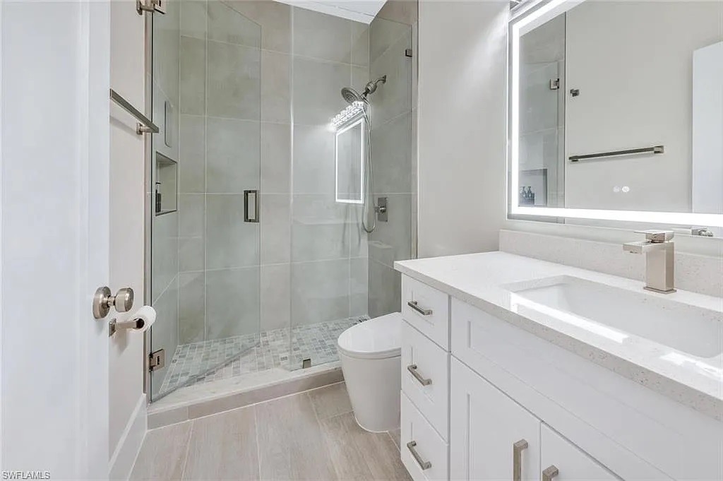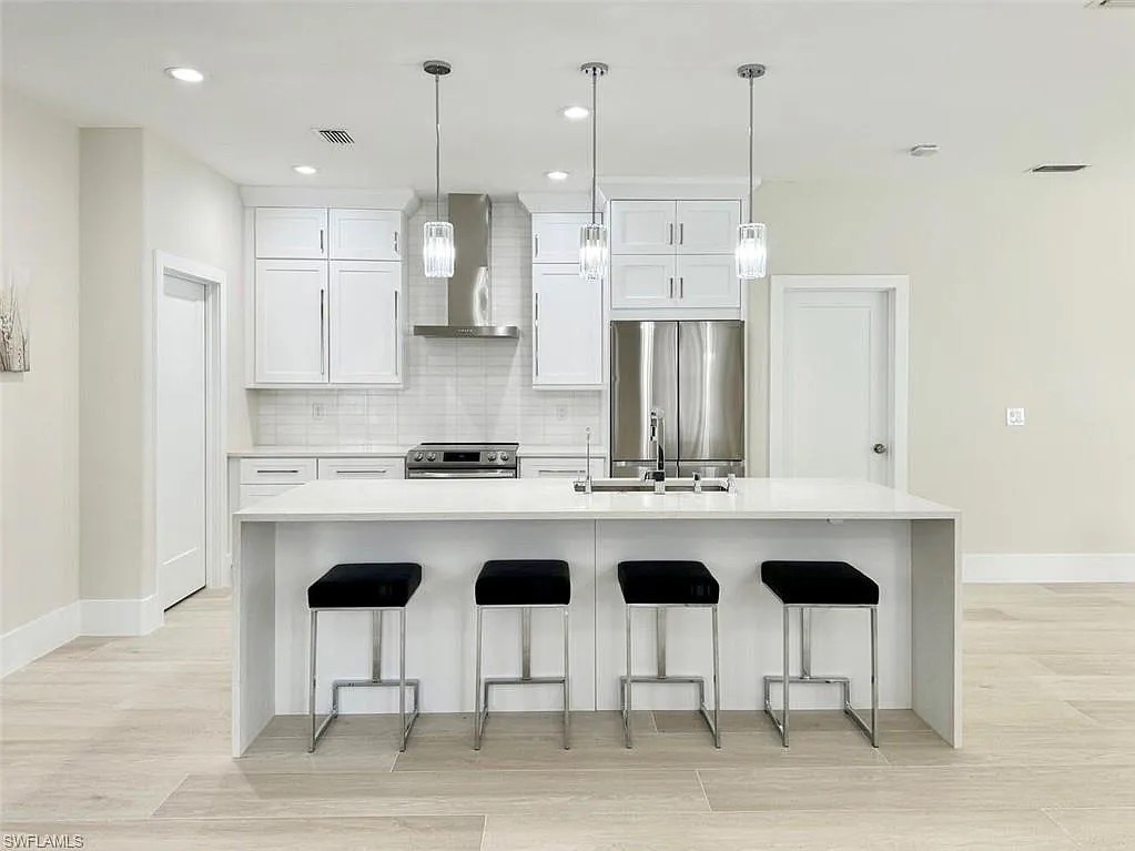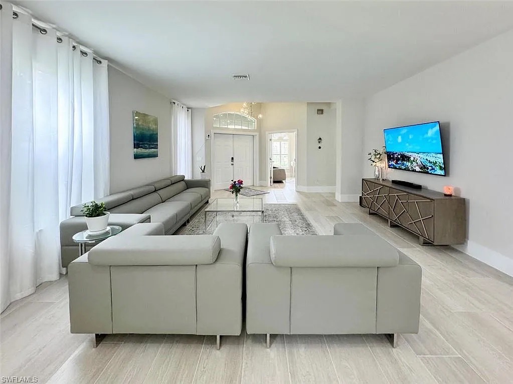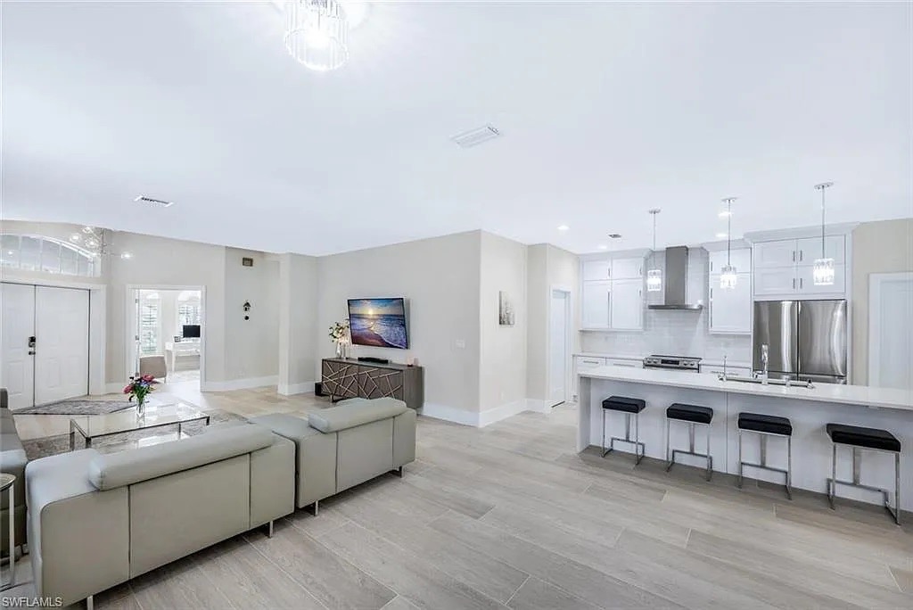 This custom-designed, single-story concrete block residence is located within the sought-after Serrano subdivision in Bonita Springs, Florida. The home showcases open-concept living, soaring ceilings, and seamless indoor–outdoor flow, all while meeting current Florida Building Code and flood-zone requirements.